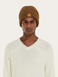 Ribbed knit beanie with a turned-up cuff and a custom suede tag. Perfect for colder days, it’s the cool finishing touch to any city-ready look. - Composition: lambskin - Made in ITALY - Product code: 360808 791010