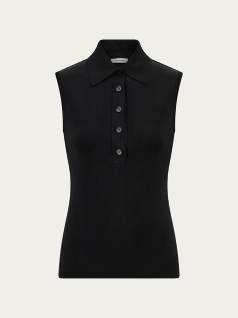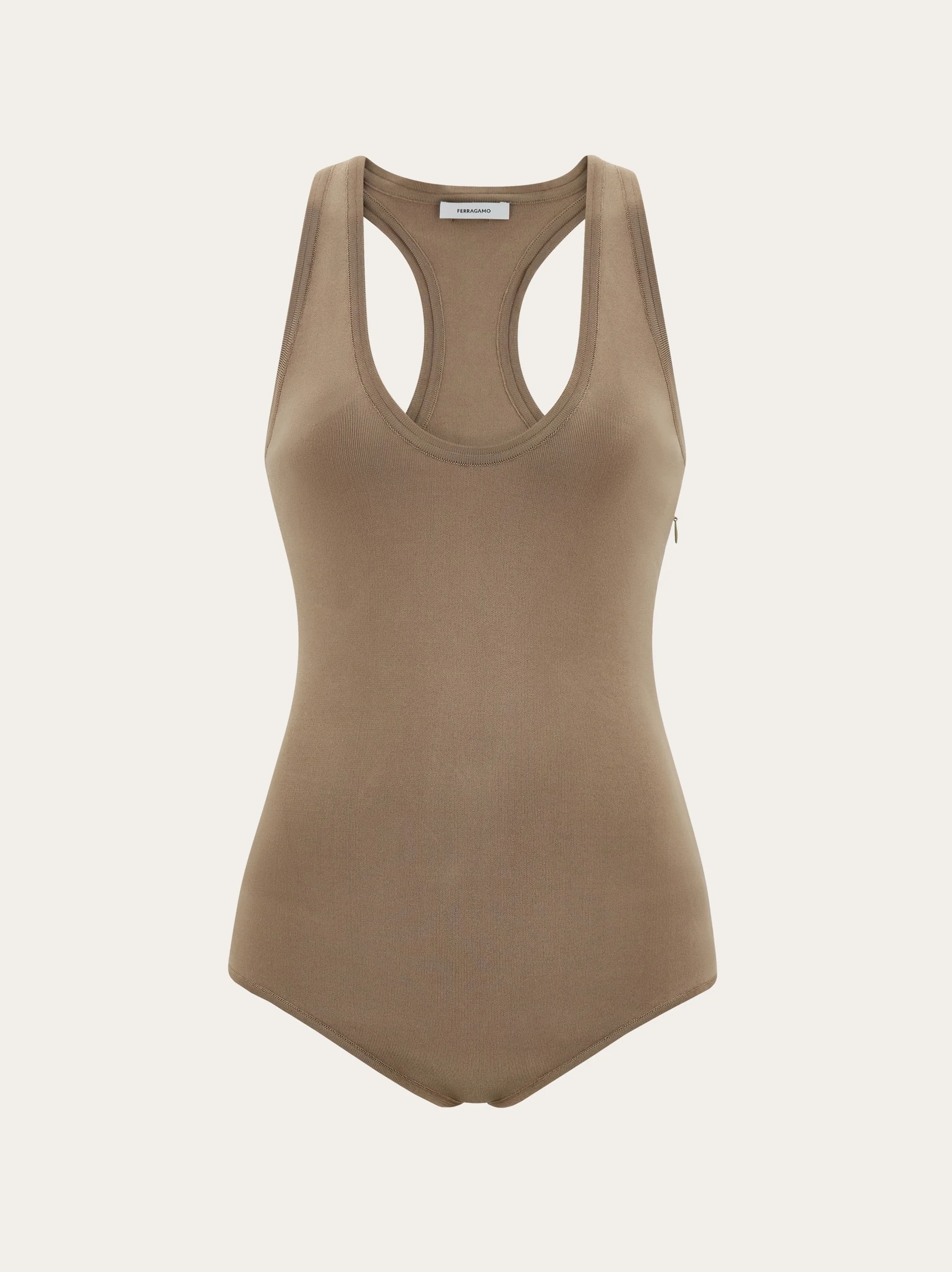 A hidden side zip assists the figure hugging form of this sleeveless body. Cut from compact shiny viscose with a deep V-neck and racer back, this ballet-inspired top lends itself to many outfit combinations. - Composition: 90% viscose, 7% polyamide, 3% elastane - Model measurements: Height 5' 10"/178 cm; Bust 31½ "/80 cm; Waist 23½"/60 cm; Hips 34 "/88 cm - Model wearing: XS - Made in ITALY - Product code: 113473 783140