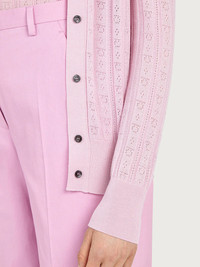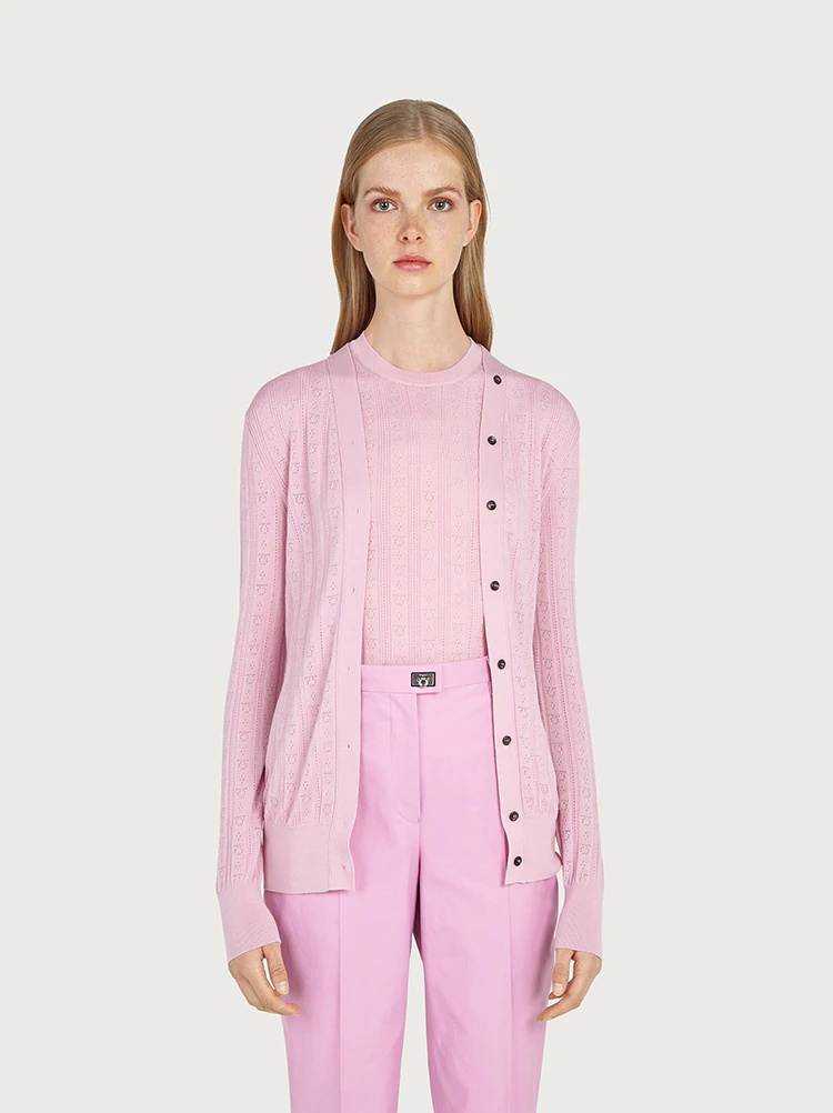 Simple knits with clean lines and iconic details: the perfect wardrobe staple for timeless style. This pure wool cardigan has rows of Gancio outlines for a delightful texture with an iconic quality. The styling options are endless: try it over a shirt, or as a twin set for a more preppy look. Made of virgin wool derived from responsible sources with high standards of animal welfare and land stewardship. Model measurements: Height 5'11"/180 cm, Bust 32"/81.5 cm, Waist 25½"/64.5 cm, Hips 34½"/87 cm - Composition: 100% pure virgin wool, responsibly sourced - Made In ITALY