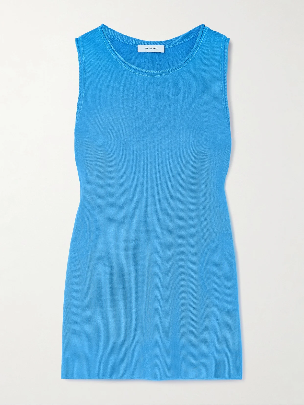 Ferragamo reserves a special place in its collections for dependable wardrobe essentials. This tank is finely knitted from pretty blue threads with a subtle luster and has a sporty racerback. There's no shortage of ways to wear it.