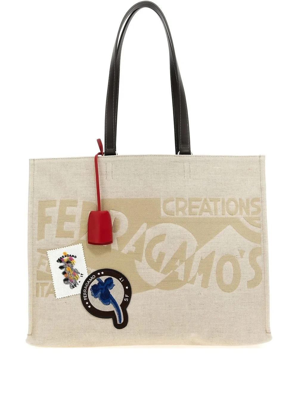 large logo-jacquard tote bag Highlights - Light beige - Two flat top handles - Two flat shoulder straps - Internal zip-fastening pocket - Internal patch pockets Made in Italy Composition Outer: Fabric 90%, CALFSKIN 10% SIZE & FIT Measurement DEPTH 5.51 in(14 cm) HEIGHT 10.62 in(27 cm) WIDTH 14.17 in(36 cm)