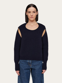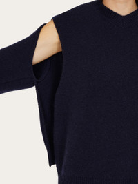 A creative take on the classic V-neck sweater with ribbed knit trims and layering details. Made of a soft and snuggly cashmere blend, this contemporary cover up is a sleeveless tank top meets cropped cardigan, with slits at the shoulders and two length layering look at the back. - Composition: 90% cashmere, 9% polyamide, 1% polyurethane - Model measurements: Height 5' 10"/178 cm cm; Bust 30½"/78 cm; Waist 23"/59 cm; Hips 35"/89 cm - Model wearing: XS - Made in ITALY - Product code: 112653 776748