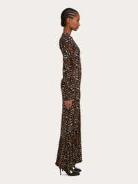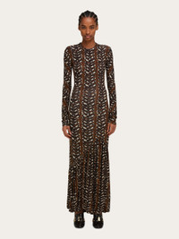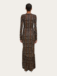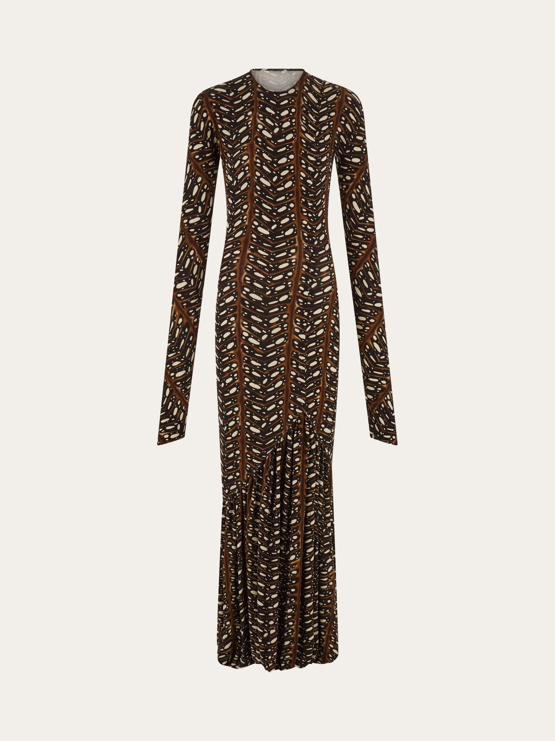 The comfort of stretch jersey with the cachet of couture. Longline dress with a figure hugging silhouette, asymmetric hem with bubble-like turn up that adds volume and movement. The exotic pattern adds a glam twist to this easy to wear piece with clean-cut round neck and extra-long sleeves. - Composition: 95% viscose, 5% elastane - Model measurements: Height 5' 9"/175 cm; Bust 30"/76 cm; Waist 24"/61 cm; Hips 34½"/87 cm - Model wearing: 38/XS - Made in ITALY - Product code: 13H408 785552