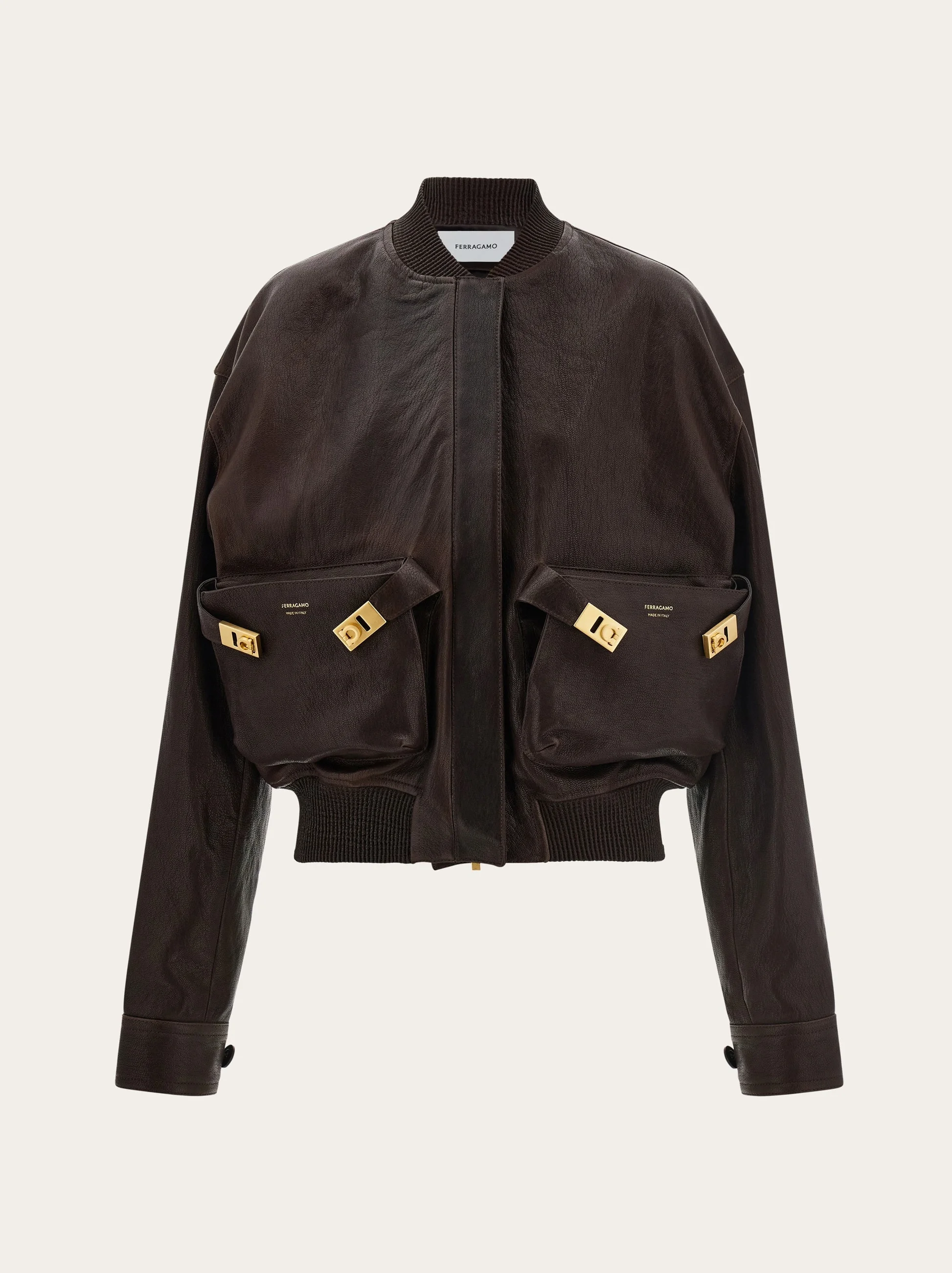 A luxurious take on a wardrobe staple, this sumptuously soft bomber jacket is cut from washed kid leather with a wrinkled finish. This masterful creation features maxi patch pockets with Hug buckles from the iconic bag collection. Ribbed trims around the collar confirm a high-end nonchalance. - Composition: kid leather - Made in ITALY - Product code: 13H644 788386