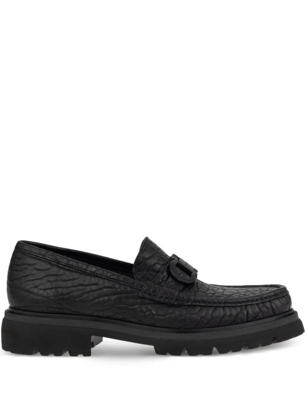 leather loafers Highlights - Black - Slip-on style - Gancini buckle - Rubber sole - Round toe Made in Italy Composition Outer: CALFSKIN 100% Sole: Rubber 100% Lining: Calf Leather 100%