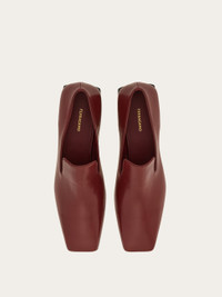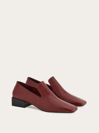This square tip slip on takes its cues from men's vintage loafers. Revised in a contemporary key, the toe, back and heel feature a square profile which is highlighted by the sumptuous kid leather and double stitching around the trim. The soft leather is punctuated by a golden Gancini at the back of the heel. - height 1.1 IN - Composition: kid leather - Made in ITALY - Product code: 01J181 777131