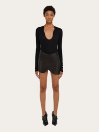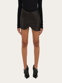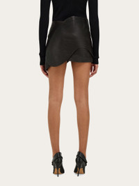 Curvaceous cuts, luxurious fabric and sumptuous overlays define this nappa mini skirt. The nappa is grainy with a natural texture, and draws a beautiful curve at the waistline and hem. - Composition: grainy nappa - Model measurements: Height 5' 10"/178 cm; Bust 31½ "/80 cm; Waist 23½"/60 cm; Hips 34 "/88 cm - Model wearing: 38 - Made in ITALY - Product code: 13G879 783188