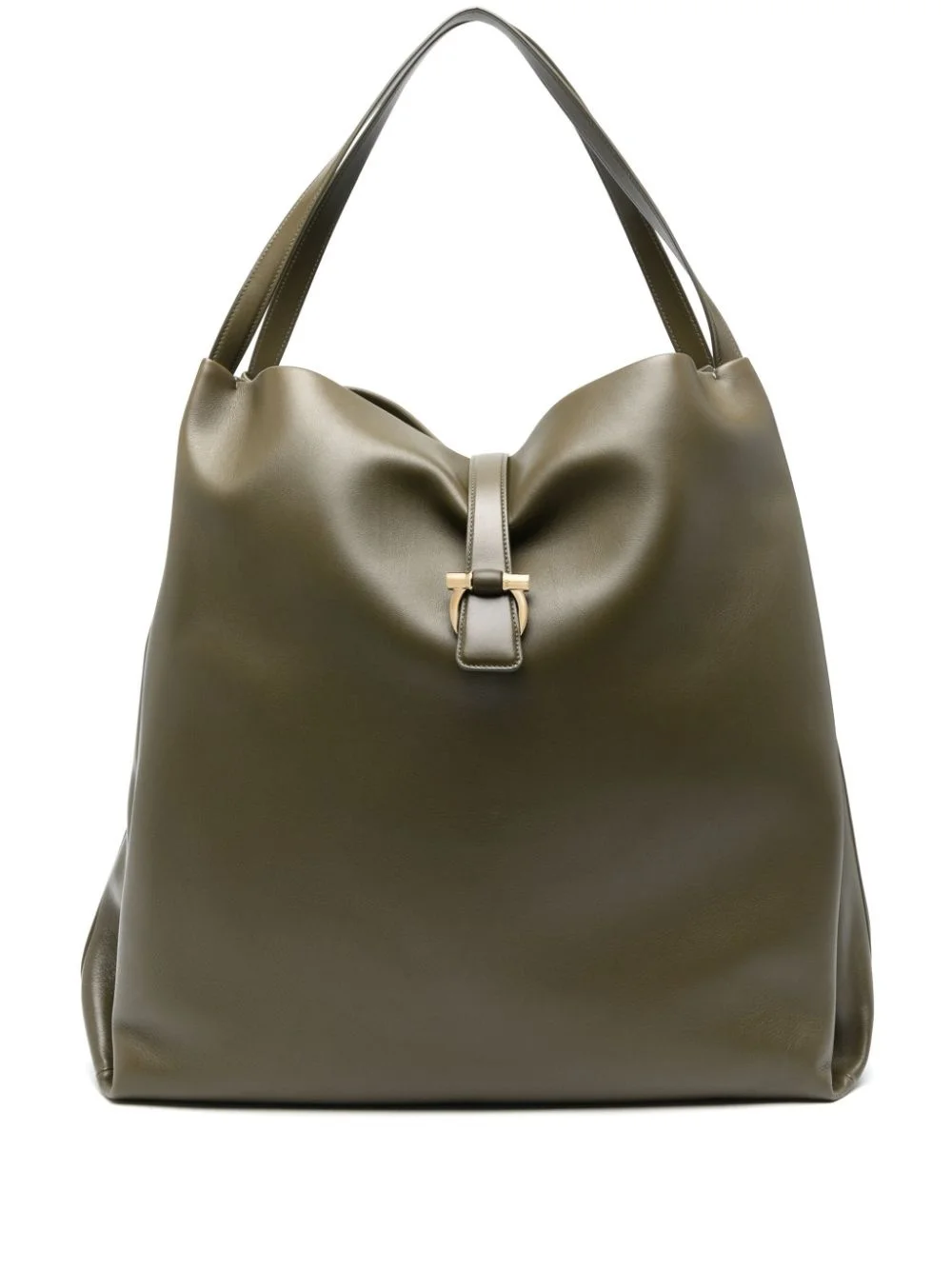 leather shoulder bag Highlights - Olive green - Magnetic fastening - Two flat shoulder straps - Internal zip-fastening pocket - Gancini plaque Made in Italy Composition Lining: Cotton 90%, Polyurethane 10% Outer: Calf Leather 100% SIZE & FIT Model measurements Height 5 ft 9 in(1.75 m) Bust/Chest 34.64 in(88 cm) Hips 36.61 in(93 cm) Waist 26.37 in(67 cm) Measurement DEPTH 6.29 in(16 cm) HANDLE 6.69 in(17 cm) HEIGHT 17.71 in(45 cm) WIDTH 17.71 in(45 cm)
