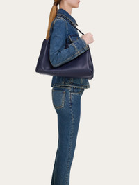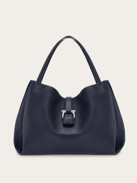 To have and to hold…A softened silhouette and rich materials confirm the iconic status of this new Ferragamo tote. Contemporary yet timeless, the sumptuous feel of calfskin leather is enhanced by the soft side bellows that evoke the shape of the lily, symbol of the city of Florence. A magnetic golden Gancini clasp fastens the top strap which opens to reveal a tonal lined interior with zip pocket. - A) Height 10.2 IN B) Length 14.9 IN C) Width 6.6 IN - Composition: calfskin - Large - Made in ITALY - Product code: 219804 785176