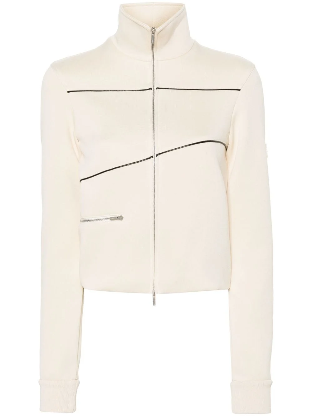 logo-patch track bomber jacket Highlights - Ivory white - Textured finish - Logo patch at the sleeve - Stand-up collar - Two-way zip fastening - Branded zip puller - Long sleeves - Ribbed cuffs - Elasticated hem - Front zip-fastening pocket - Full lining Made in Italy Composition Lining: Viscose 60%, Polyester 40% Outer: Polyester 46%, Cotton 43%, Polyamide 11% SIZE & FIT Model measurements Height 5 ft 9 in(1.76 m) Bust/Chest 31.1 in(79 cm) Hips 36.61 in(93 cm) Waist 24.8 in(63 cm) FittingInformation Designed for a slim fit that sits just away from the body offering a close yet comfortable fit Made from a midweight non-stretch fabric, this piece offers minimal elasticity when worn This piece fits true to size – take your usual size Washing instructions Dry Clean Only