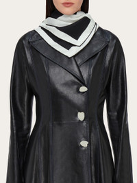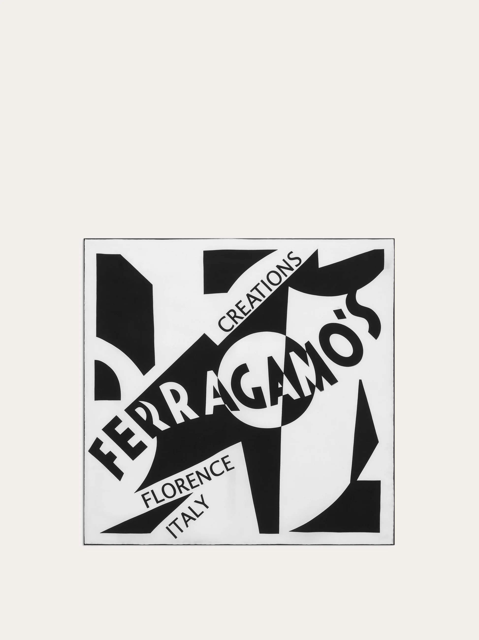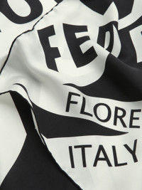 The futuristic lines of the logo designed by Lucio Venna adorn this scarf of contemporary dimensions, crafted in pure silk. Versatile and luminous, it plays with bold graphics and starkly contrasting hues. The edges are finished by hand, exuding an elegant allure. - length 27.5 IN width 27.5 IN - Composition: 100% silk - Made in ITALY - Product code: 310171 775280