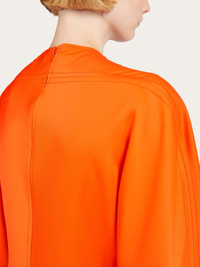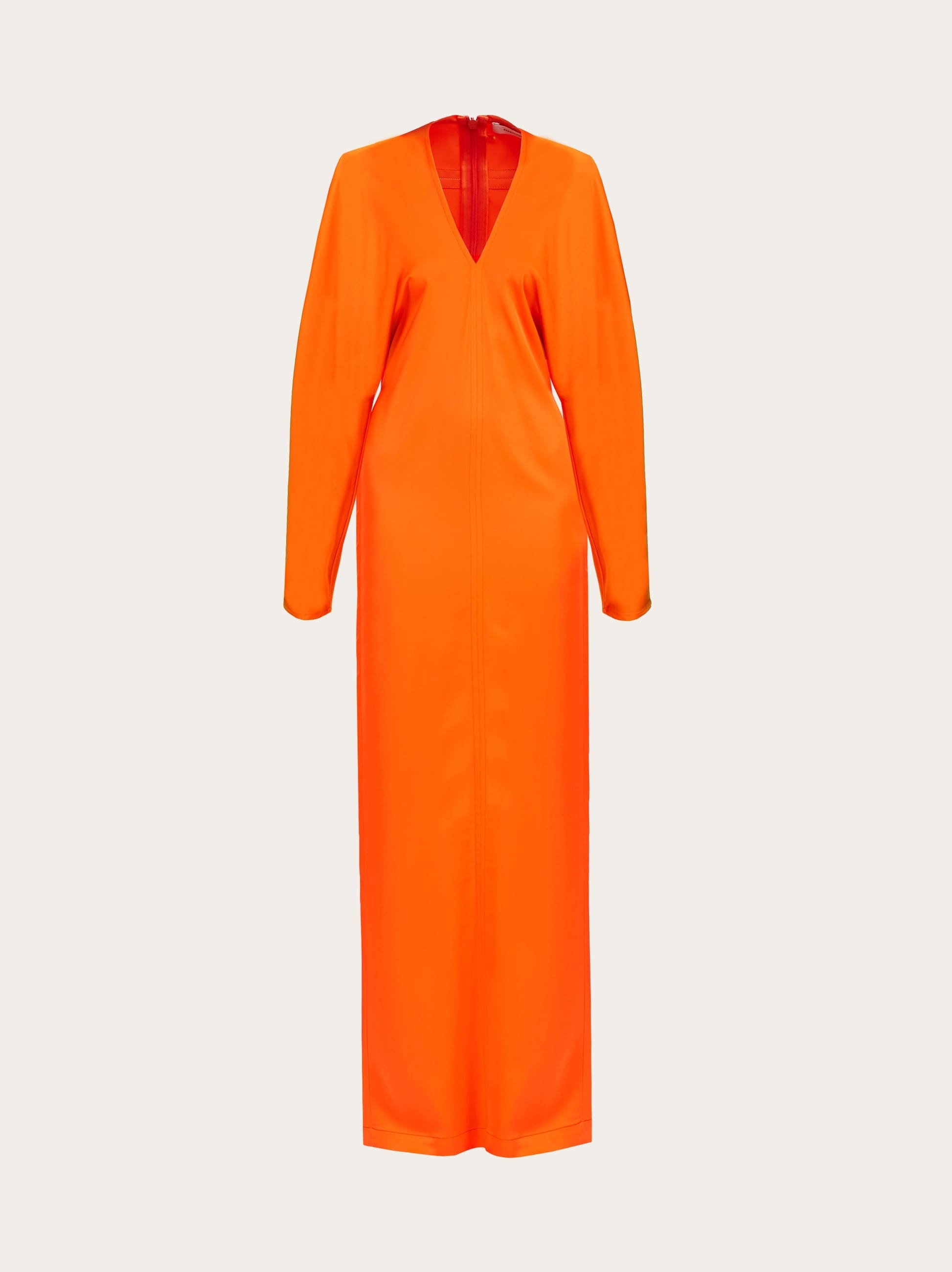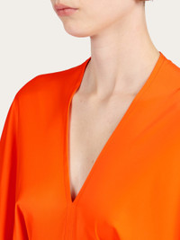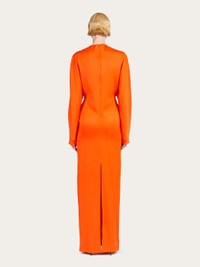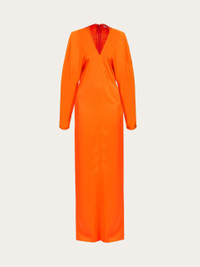 Contemporary volumes and clean lines define this viscose satin dress by Ferragamo. Tonal stitching elegantly traces the outline, along the back yoke and kimono sleeves, along the front and back center, up to the central slit. The maxi length is both fitted and relaxed, for a truly modern look. The fabric is made from cellulose that comes from sustainably managed forests - Composition: 96% viscose, 4% spandex - Model measurements: Height 5' 10"/178 cm; Bust 31½ "/80 cm; Waist 23½"/60 cm; Hips 34 "/88 cm - Model wearing: 38 - Made in ITALY - Product code: 13C954 770483