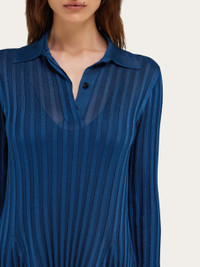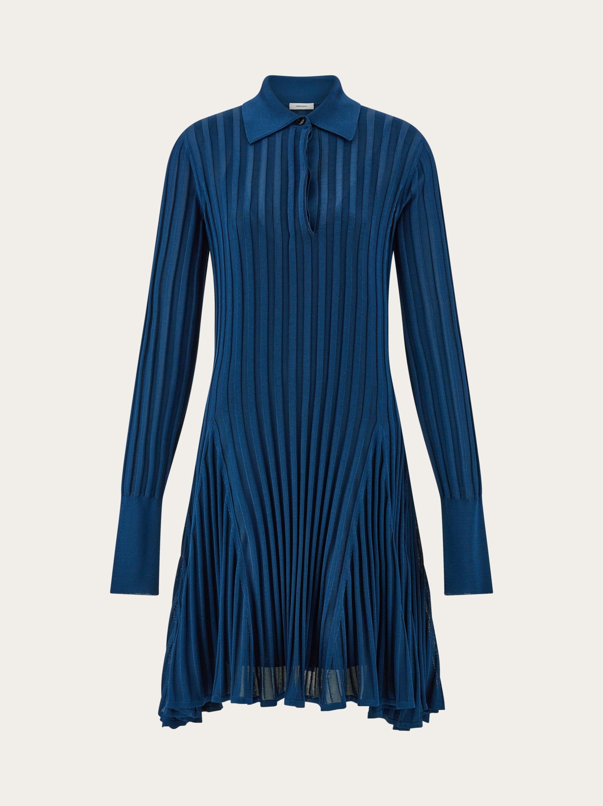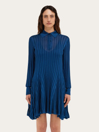 A sporty influence gives this elegant silhouette a current edge: fit and flare skater dress made of pure viscose. The smooth fabric features a flat ribbed finish, with a polo collar and full short skirt with voluminous V-cuts at the front. A custom metal tab is placed at the back of the neck. - Composition: 100% viscose - Model measurements: Height 5' 10"/178 cm cm; Bust 30½"/78 cm; Waist 23"/59 cm; Hips 35"/89 cm - Model wearing: XS - Made in ITALY - Product code: 112967 781267