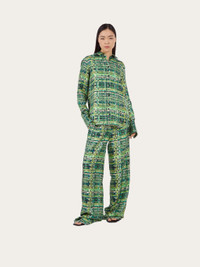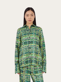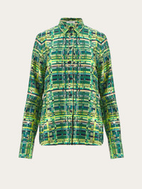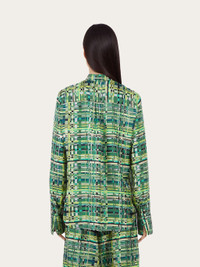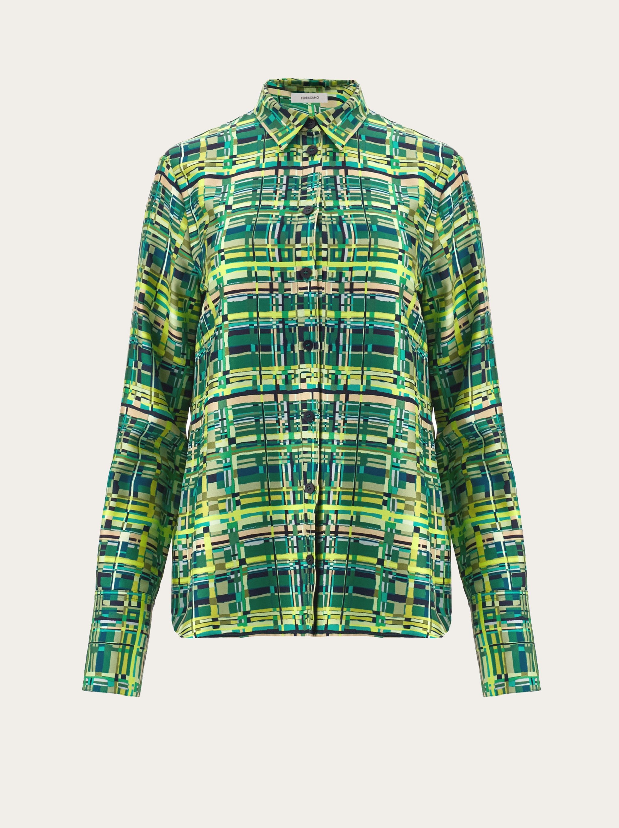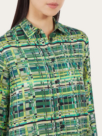 A bold, eye catching pattern printed on pure silk. This long sleeved shirt is cut in a relaxed fit, with a fold at the back to add volume. The check print is inspired by a motif from the foulard collection. Model measurements: Height 5' 10½ "/179 cm; Bust 32½ "/82 cm; Waist 23"/58 cm; Hips 34½ "/88 cm Model wearing: 38 - length 72.0 CM / 28.3 IN - Composition: 100% silk - Product code: 13C584 765244 - Made in ITALY