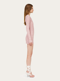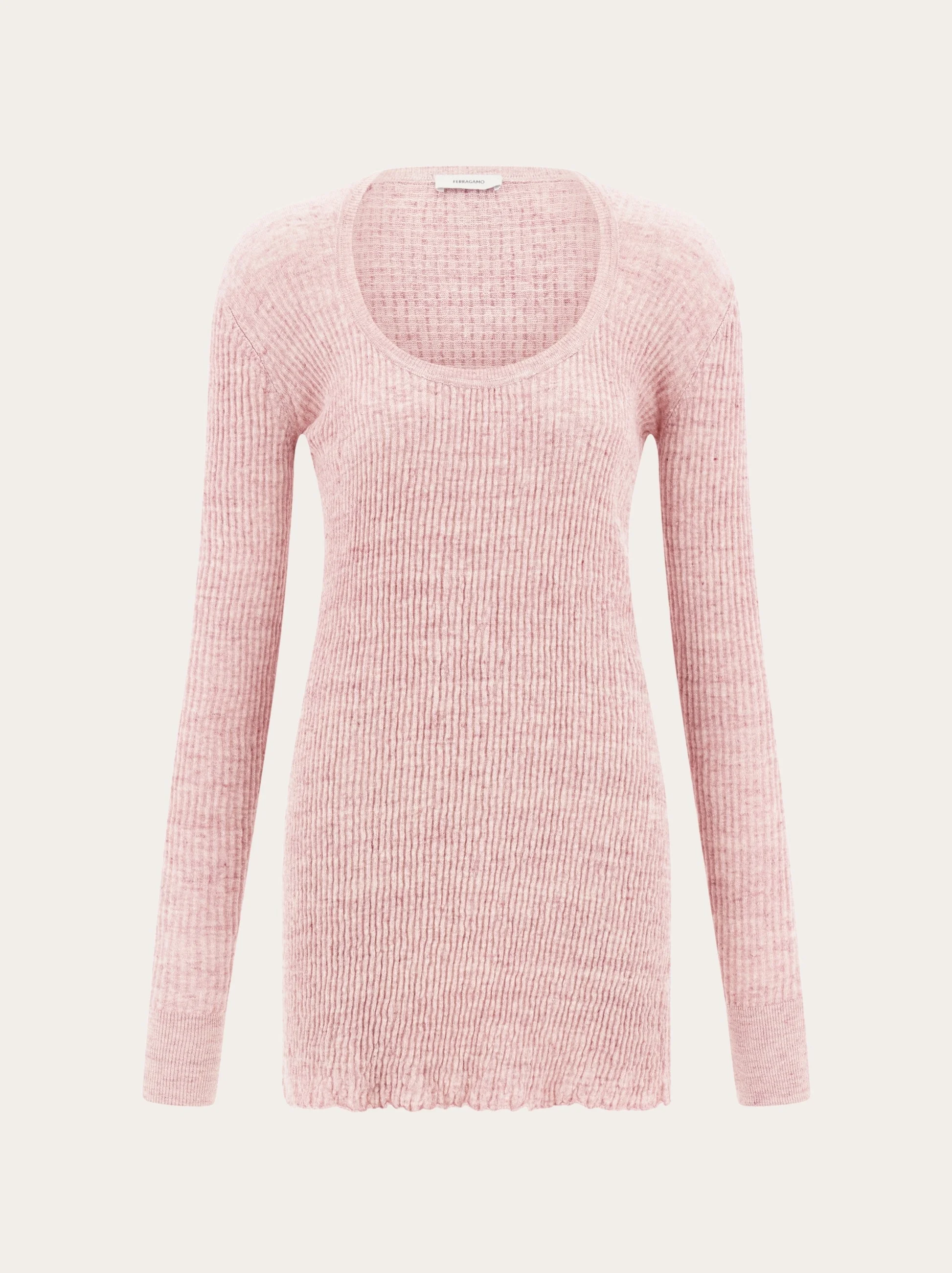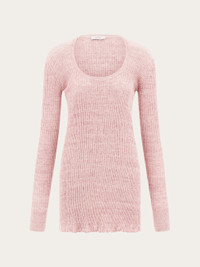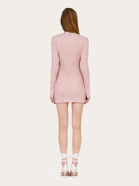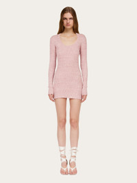 Knitted from claque linen, this long-sleeved mini dress has an intriguing texture. Sporty and playful, the clean line of this mini dress allows the unique features of the soft fabric to shine. A custom metal tab at the back of the neck completes the design. - Composition: 95% linen, 5% polyamide - Model measurements: Height 5' 10"/178 cm; Bust 32 / 81cm; Waist 25"/63 cm; Hips 34½"/88 cm - Model wearing: 38/XS - Made in ITALY - Product code: 13H264 783887