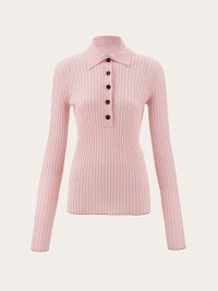 Long sleeved ribbed knit polo top