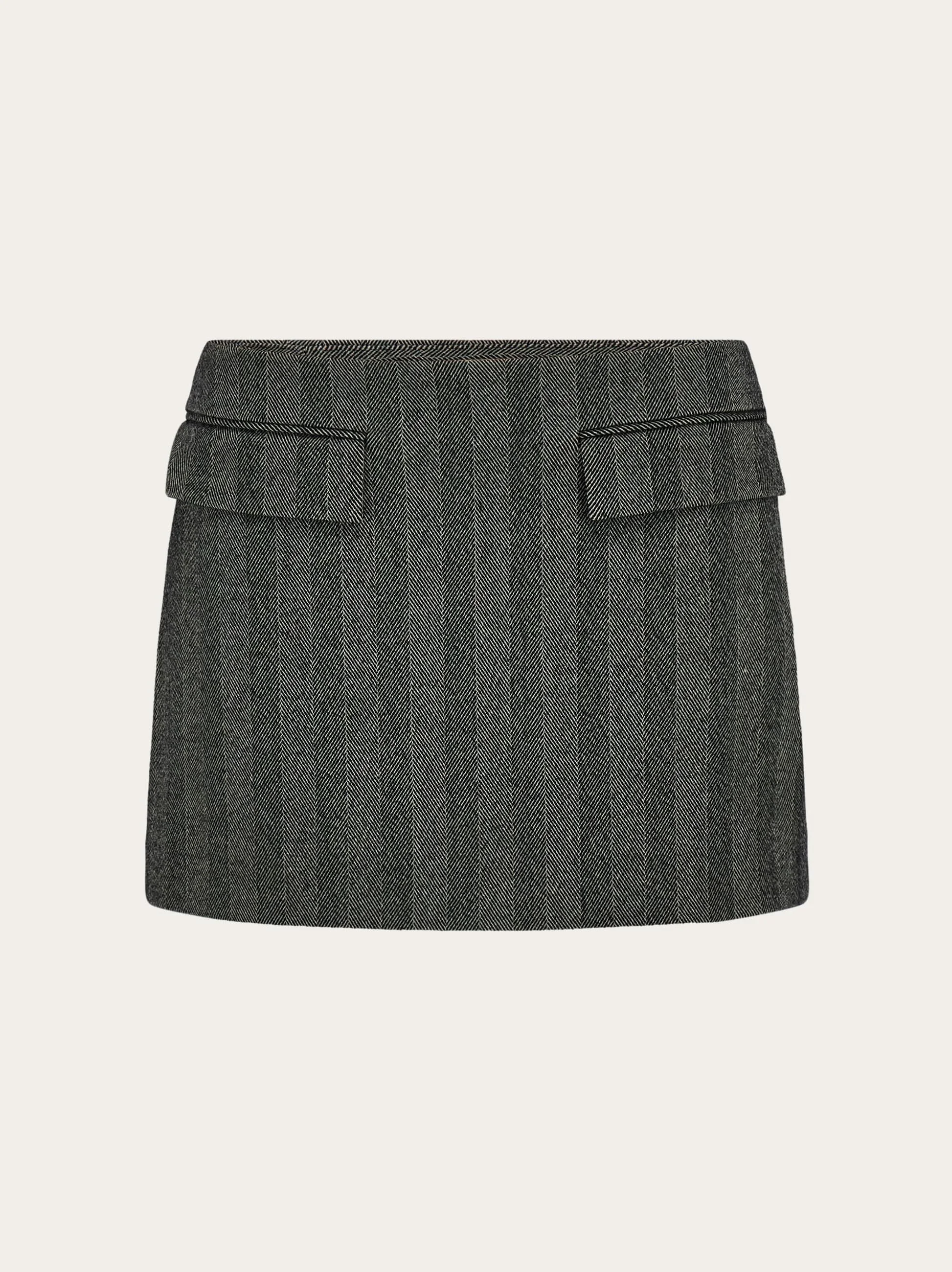 Drap: the long process used to finish this wool and cashmere mini skirt to ensure an ultra-soft hand feel. The felled, brushed, trimmed and pressed fabric has a straight cut with low waist and hidden side zip. Decorated only by flap pockets and a tailoring-inspired welt on the sides, the minimal design exudes maximum impact. - Composition: 92% pure virgin wool, 6% polyamide, 2% elastane - Made in ITALY - Product code: 13H668 788274