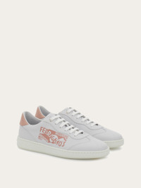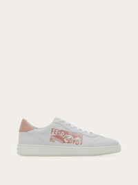 The vintage-inspired sneaker design meets the refined appeal of Ferragamo creations in this soft calfskin model. The side is decorated with an embossed Venna logo in contrasting hues, a graphic created by the artist of the same name in the 1930s for the first Vara shoes. The design is completed with matching leather toppings, a metal eyelet with Gancini silhouette, and an ultra-light rubber sole with box construction. - Composition: calfskin - Made in ITALY - Product code: 030633 775054