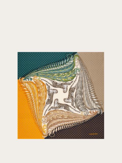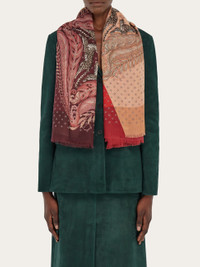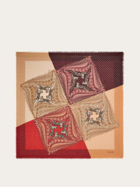 Warm, enveloping and oh so luxurious, the cashmere stole is the perfect layering piece for transitional seasons. This model features the Madras print, a sophisticated color block design with foliage elements, micro tie prints and mini majestic jaguars. - length 55.1 IN width 55.1 IN - Composition: 100% cashmere - Made in ITALY - Product code: 321155 785639