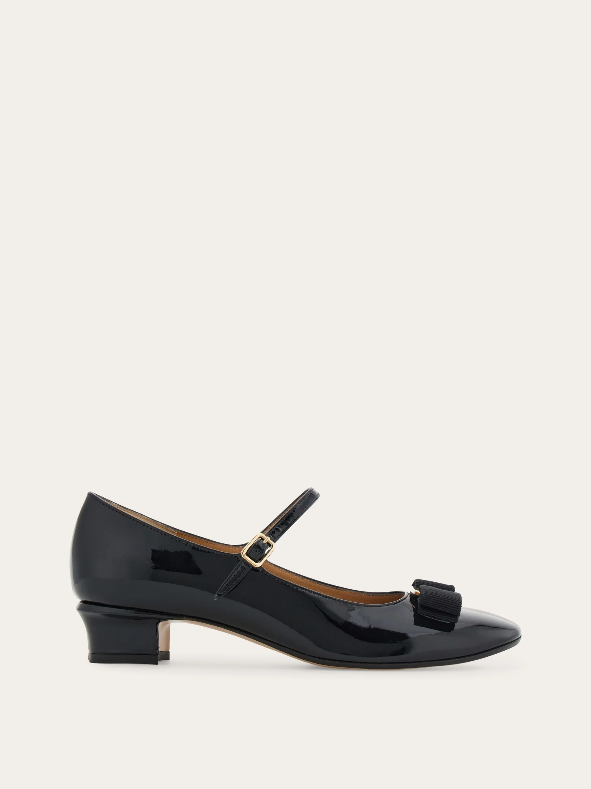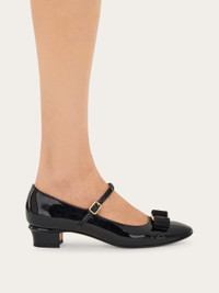 When icons come together, coveted works of wearable art come to life. The Mary Jane silhouette is embellished with the iconic Vara bow in this new take on a fashion favorite. Golden hardware adds a flash of glamour, echoed by the curve in the unique block heel. - Composition: naplak - Made in ITALY - Product code: 01L345 790731