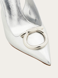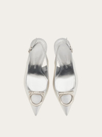 Sophisticated and empowering: this slingback pump features an elegantly cut, rounded vamp and a thin stiletto heel wrapped in tonal leather. The flattering, subtly sensual silhouette is finished with an oversized version of the Gancini motif in a glistening golden finish. - Composition: laminated nappa - Made in ITALY - Product code: 01K452 790417