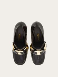 Elegant with an urban edge: this new pump stands out with its squared toe accented with tactile stitch detailing. It's set on a slim heel and topped with a maxi Vara plate, interlaced with a leather strap for dimension and intrigue. Presented here in a patent finish in a chic crocodile pattern. - Composition: printed kid leather - Made in ITALY - Product code: 01K578 785700