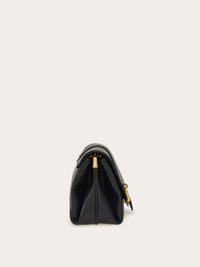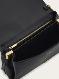 Effortlessly chic and easy to carry, this new Ferragamo cross body is a lesson in contemporary style. Cut from sumptuous Italian calfskin with a semi-gloss finish, the leather is punctuated by a golden Gancini clasp on the front flap. At the sides, custom golden tabs shape the bellows whose outline echoes the lily, the symbol of Florence. Carry as a clutch, shoulder bag or wear cross body with the adjustable, removable strap and golden chain. - A) Height 6.2 IN B) Length 12.2 IN C) Width 4.3 IN - Composition: calfskin - Small - Made in ITALY - Product code: 219794 777229
