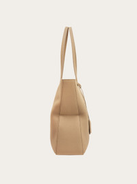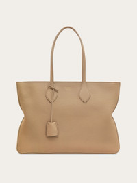 The classic tote, Ferragamo style. Cut from hammered calfskin leather with a rich, dappled texture, this much loved carry all folds slightly at the sides to create a new, original silhouette. This mid-sized edition has a lined interior with a flat pocket, and a golden fob keyring hangs from the mid-length top handle, while metal studs protect the base. Adjustable removable shoulder strap. - A) Height 11.8 IN B) Length 16.5 IN C) Width 4.3 IN - Composition: hammered calfskin - Large - Made in ITALY - Product code: 219908 781493
