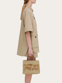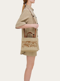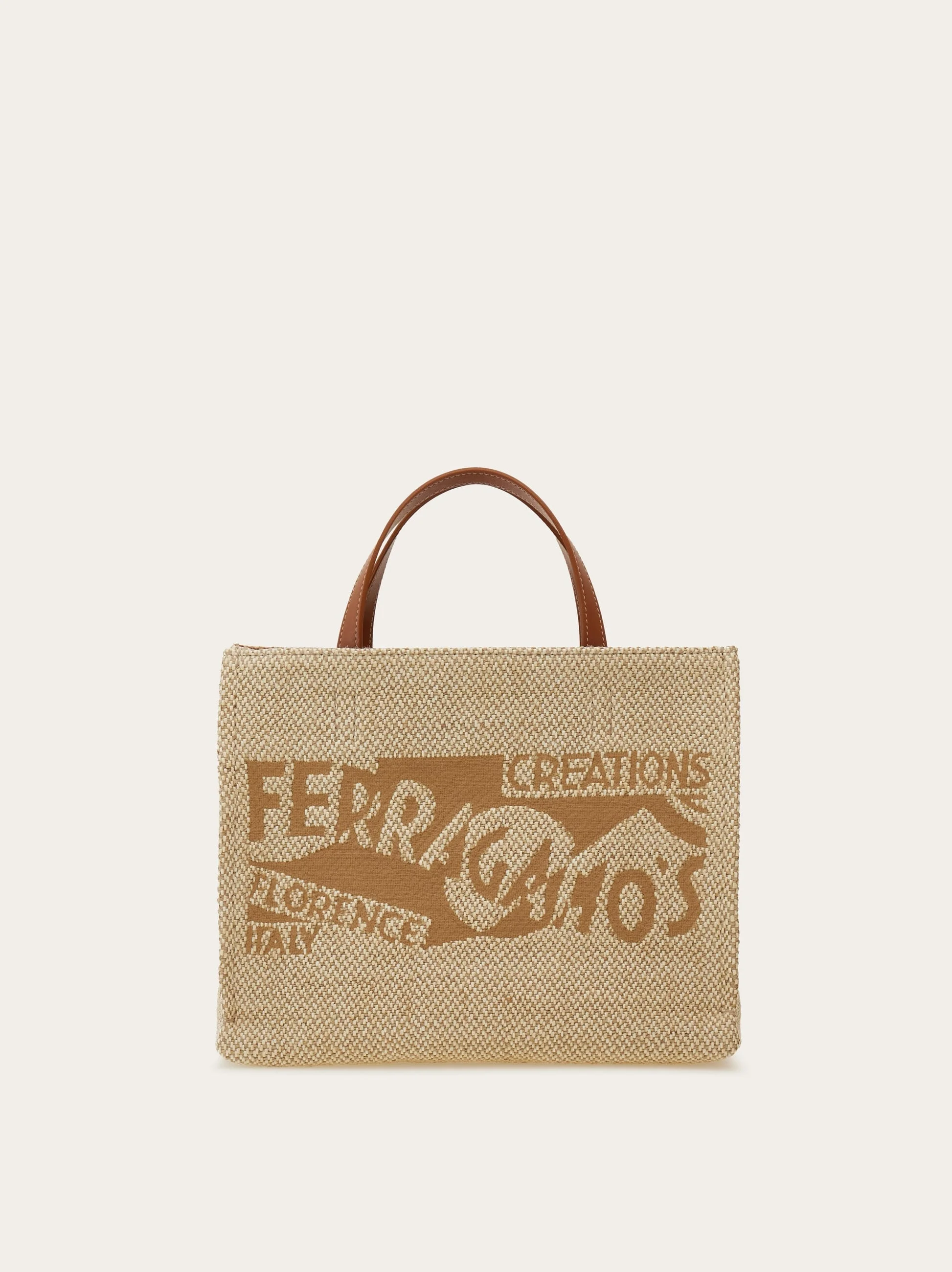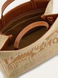 A chic option for off duty looks, this large tote features the iconic logo, created by artist Lucio Venna in the 1930's. The fabric body duets with leather handle drop and leather trims, while the fixed shoulder strap and handle drop, allowing it to be carried by hand, on the shoulder or crossbody for hands free styling. Lined interior with zip pocket. - A) Height 8.2 IN B) Length 10.4 IN C) Width 5.5 IN - Composition: fabric and calfskin - Handle drop: 3.9 in/10 cm - Medium - Made in ITALY - Product code: 219407 783299
