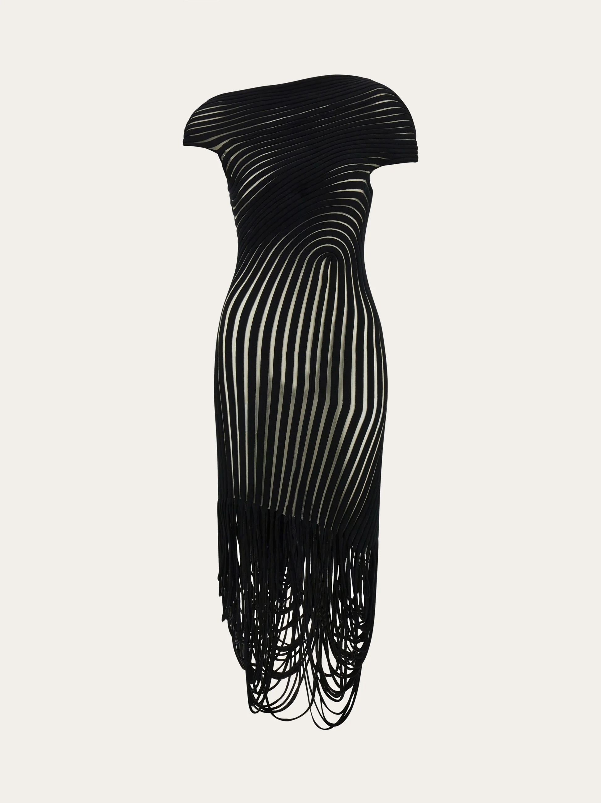 The twists and turns of this masterfully crafted dress are created with strands of organza that drape sensually to flatter every curve. The asymmetrical one shoulder cut echoes an effortless style that feels like a second skin. - Composition: 70% viscose, 30% polyester - Model measurements: Height 5' 10"/178 cm; Bust 32½ / 82cm; Waist 23½"/60 cm; Hips 34½"/87 cm - Model wearing: 38/XS - Made in ITALY - Product code: 113370 783154