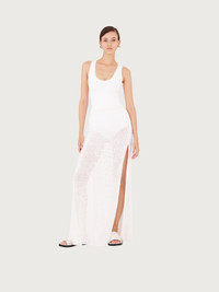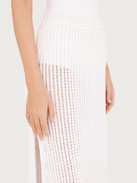 Minimal, clean cut. Midi pure cotton, mesh stitch skirt. The slim fit hugs the silhouette at the hips, and features a deep side slit for a sensual touch. Made from 100% organic cotton produced without chemicals. Model measurements: Height 5' 10"/178 cm ; Bust 32 ½ "/82 cm; Waist 23½ "/60 cm; Hips 35"/89 cm Model wearing: XS - Composition: 100% cotton - Made In ITALY
