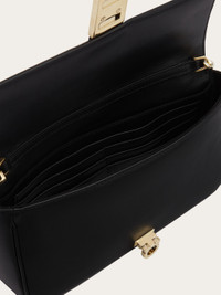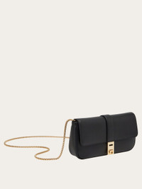 Chic and bubbly, this cool mini bag is the perfect accessory to elevate your outfit and carry your essentials. Cut from smooth calfskin with a semi-matte finish, it features a front flap with Gancini buckle clasp. Inside, the fabric lining has multiple slots to replace a wallet, and the metal shoulder strap with squared chain links can be removed to turn it into a clutch. Shoulder strap length: 55 cm - height 12.0 CM / 4.7 IN length 23.0 CM / 9 IN width 4.5 CM / 1.7 IN - Composition: calfskin - Product code: 218340 769779 - Made in ITALY