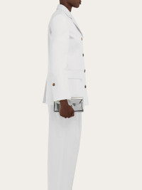 Super glam take on the mini top flap bag, in laminated leather. The cool metallic hue is reflected in the Gancini chain strap, which can also be removed to create an uptown clutch. On the front flap, the magnetic clasp is lit up by a crystal embellished Gancio. - height 3.9 IN length 8.4 IN width 1.9 IN - Composition: laminated calfskin - Mini - Made in ITALY - Product code: 221049 790313