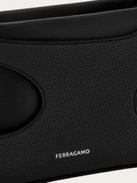 Youthful and more casual, this crossbody version of the new Salvatore Ferragamo bag features a hammered leather exterior with an organic-shaped cut-out detail. The interior is crafted from soft leather and has a zip fastening. Adjustable strap for two ways of carrying it. The upper is made from leather tested and verified to have been produced using a metal-free tanning process, zipper tape is made using 90% recycled polyester and sewing thread is made from 100% post-consumer recycled polyester. - height 14.5 CM / 5.7 IN length 24.0 CM / 9.4 IN width 6.0 CM / 2.3 IN - Composition: hammered calfskin - Product code: 214956 763397 - Made in ITALY