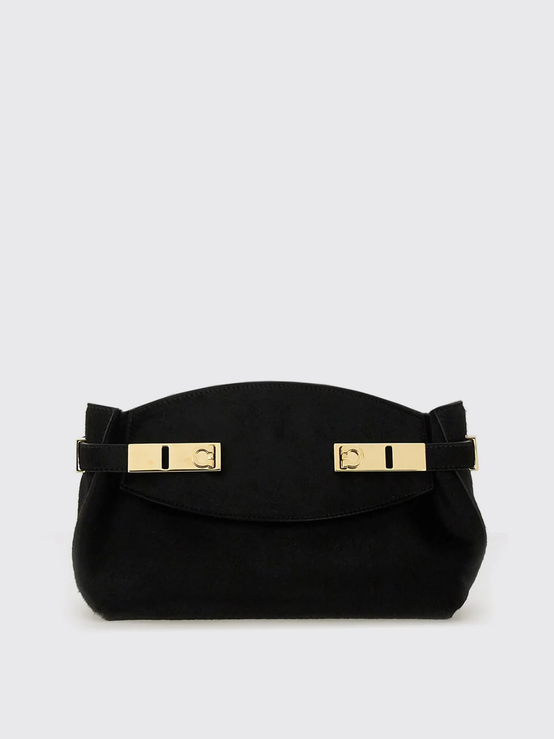 DESCRIPTION - Style: Elegant - Details: With ribbons - Model: Hand - Shoulder strap: Adjustable and removable - Lining: With logo - Closure: With interlocking metal mechanism - Shape: Round - Logo: Gancini - Materials: Suede - Pattern: Plain-colored DETAILS AND CARE Composition LEATHER SIZE AND FIT Sizes not available Designer code: 779733215974 021 Giglio Code: H02819 Designer: Ferragamo Collection: Ferragamo Woman Category: Bags Ferragamo