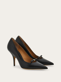 Creative prowess and masterful design brings to life a fifties inspired silhouette in a contemporary key. Made of the softest kid leather with a buttery smooth feel, this chic pump has a pointed tip and a slim strand of leather across the toes that is tied in a bow just like a delicate ribbon whose line cuts the oval opening of the shoe. Set on a 4cm kitten heel, the contrast in shapes adds a current twist to its romantic allure. - Composition: kid leather - Made in ITALY - Product code: 01J851 781859
