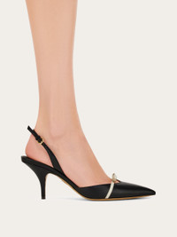 Above and beyond seasons and trends, this elegant slingback is simply timeless. Made of the softest kid leather with a buttery smooth feel, it has a pointed tip and a slim strand of leather across the toes that is tied in a bow just like a delicate ribbon whose line cuts the oval opening of the shoe. Set on a slim heel with a slight curve, the contrast in shapes adds a current twist to its romantic allure. - Composition: kid leather - Made in ITALY - Product code: 01J694 781090