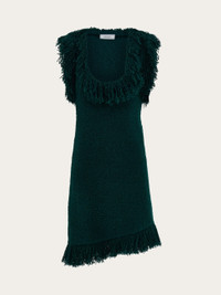 With a clean cut silhouette and sumptuous details, this mini dress is a savvy balance of sophistication and fun. Frivolous fringes add a voluptuous feel to the irregular neckline and oblique hem, and a custom metal tab is placed at the back of the neck. - Composition: 89% silk, 8% viscose, 3% polyester - Model measurements: Height 5' 9"/175 cm; Bust 30"/76 cm; Waist 24"/61 cm; Hips 34½"/87 cm - Model wearing: 38/XS - Made in ITALY - Product code: 13H364 785505
