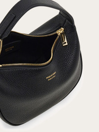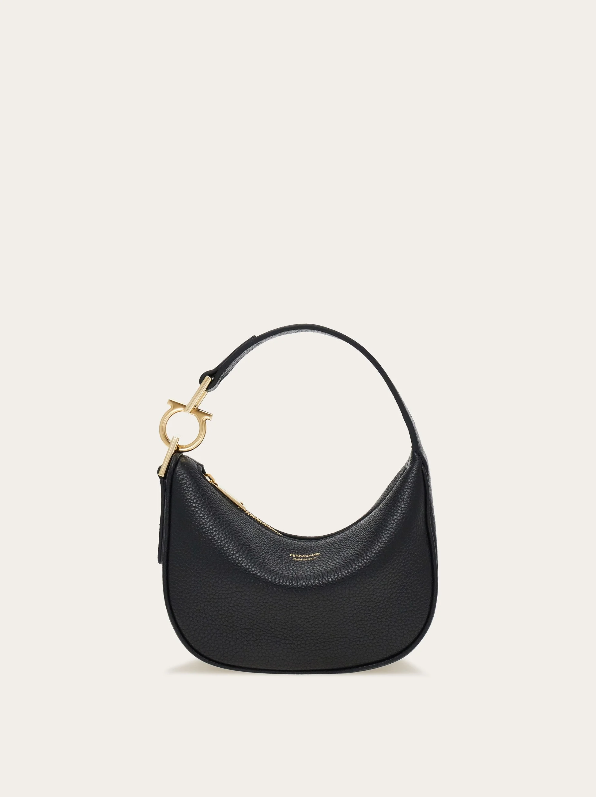 With soft curves and a relaxed structure that rests naturally against the body, this mini hobo bag is the ultimate cool-girl essential. A palladium-tone Gancini detail on the handle and a sleek metal zip add refined accents to a design made for effortless hand carry. - height 4.9 IN length 7.8 IN width 3.5 IN - Composition: hammered calfskin - Extra Small - Made in ITALY - Product code: 220965 785984