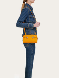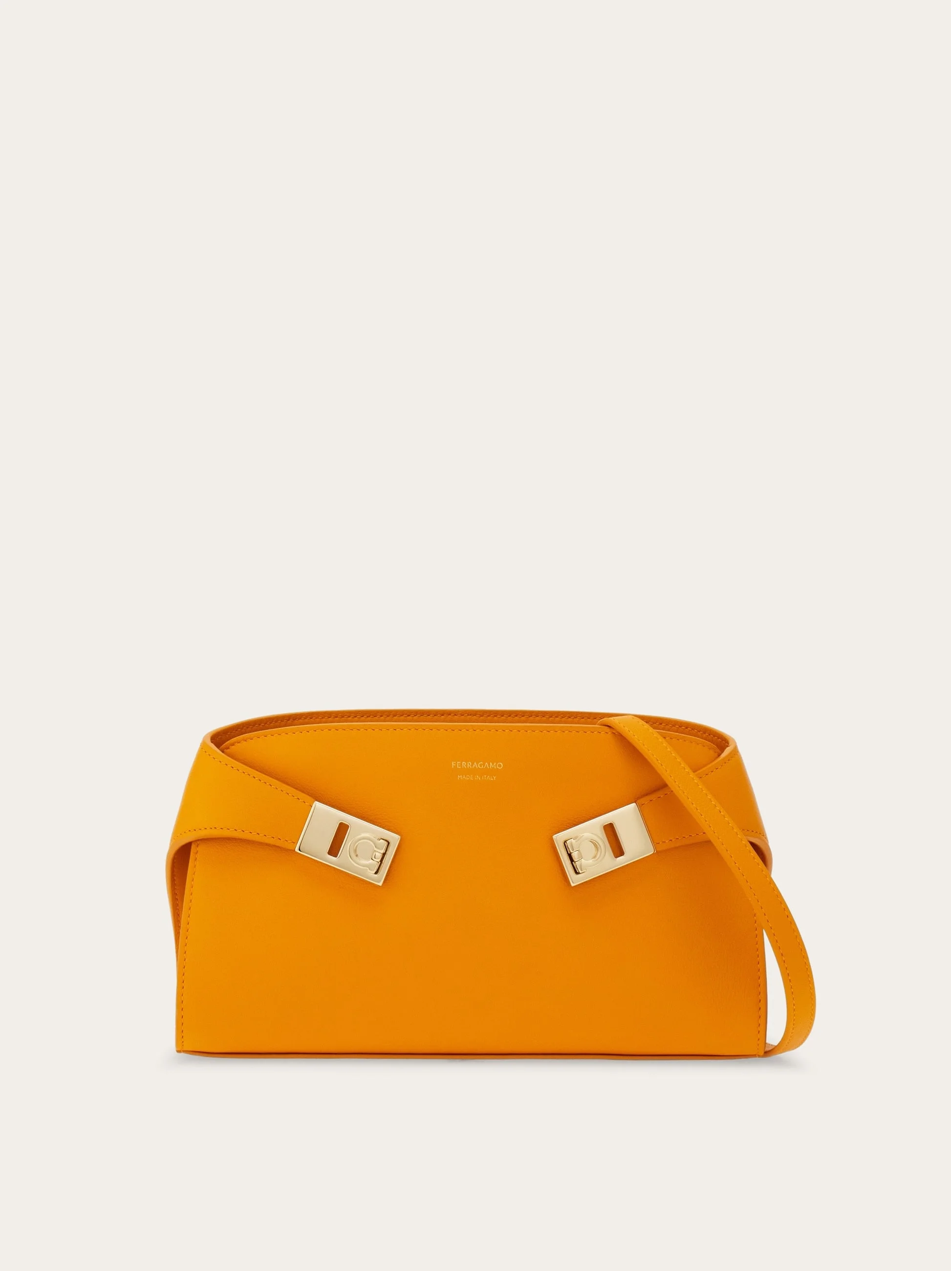 Understated yet unmissable, the Ferragamo mini Hug bag is the perfect clutch to elevate any look. Cut from rich calfskin leather, the silhouette is true to the iconic Hug line, with wide straps that wrap the sides and fasten at the front via two palladium-toned Gancio clasps. A zip fastening opens to reveal an organized interior with dual card slots, while the removable leather strap offers a hands free styling option. - A) Height 5.5 IN B) Length 9.4 IN C) Width 2.1 IN - Composition: calfskin - Mini - Made in ITALY - Product code: 218964 784584