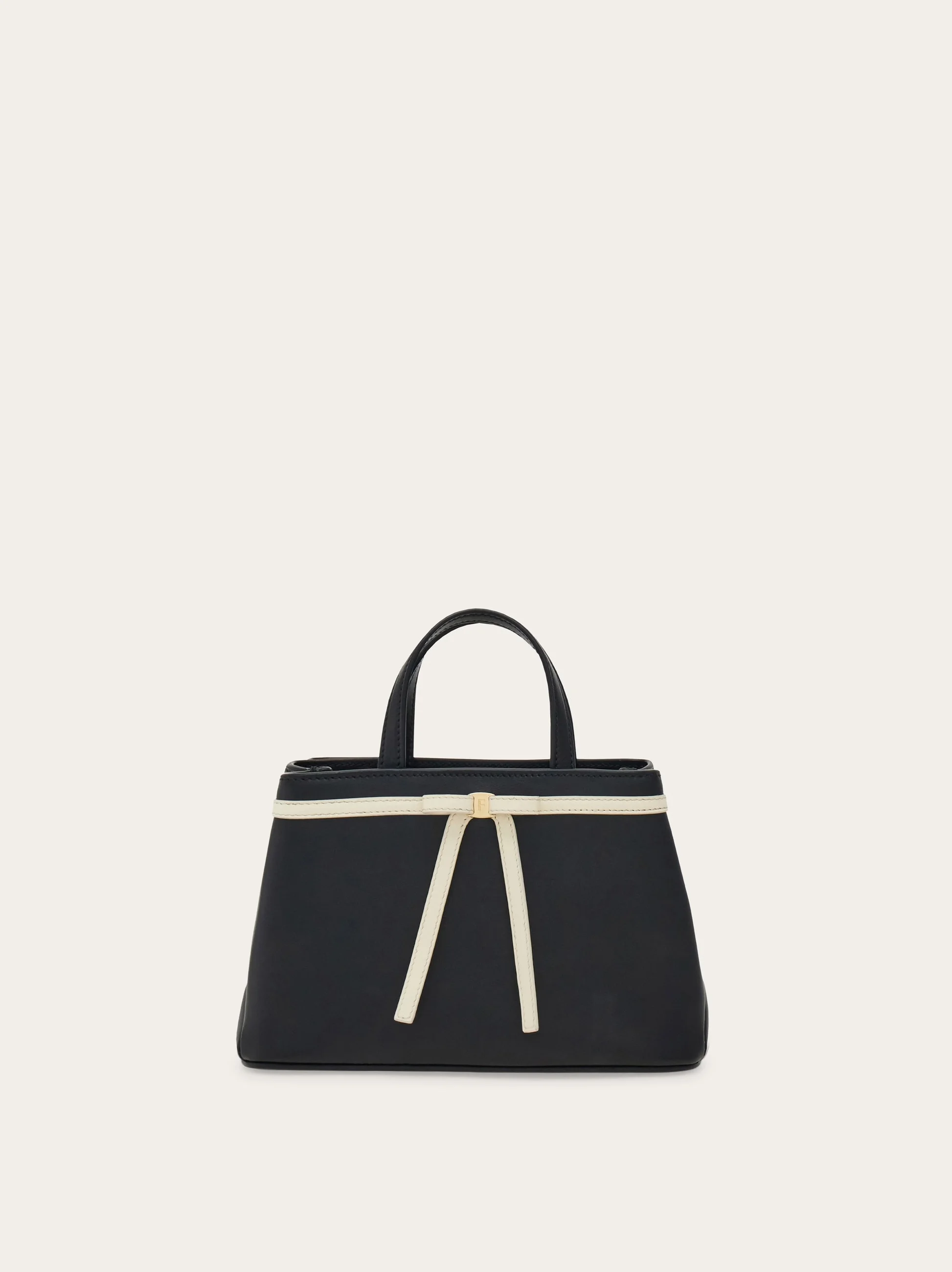 Compact minibag with a slim contrasting bow held by a custom golden buckle. Playful and feminine, it has a short top handle and removable shoulder strap, and is fastened with a magnetic clasp. Flat pocket inside. - height 5.5 IN length 8.6 IN width 3.9 IN - Composition: calfskin - Mini - Made in ITALY - Product code: 221080 790190