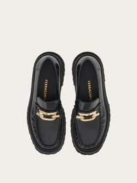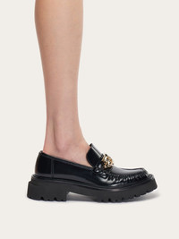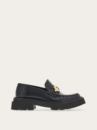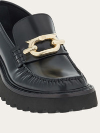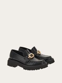 A new take on British loafers with a topstitched apron toe with slight gathering. The upper is adorned by the updated maxi-Gancini accent. Ultra-light rubber sole with protruding welt and lug tread. - Heel 5 cm - Composition: calfskin - Made In ITALY