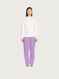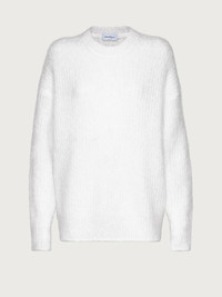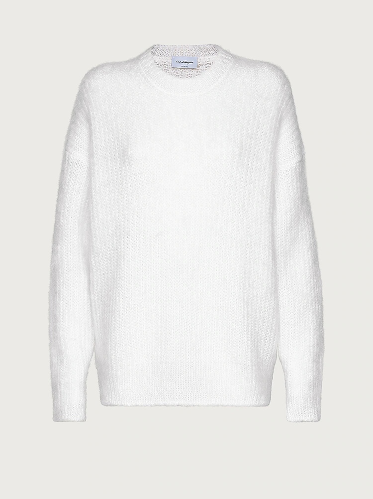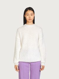Relaxed fit mohair sweater with an easy-chic vibe. The English knit rib is oversized, with a drop shoulder and loose hem. Cozy up in this chic piece, perfect for laid back casual looks with effortless style. The small rubber tag with signature on the back confirms it place among the fashion set. Model measurements: Height 5' 10½"/179 cm, Bust 31"/78.5 cm, Waist 24½"/62 cm, Hips 36"/91 cm - Composition: 67% mohair, 28% polyamide, 5% wool - Made In ITALY