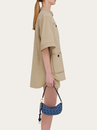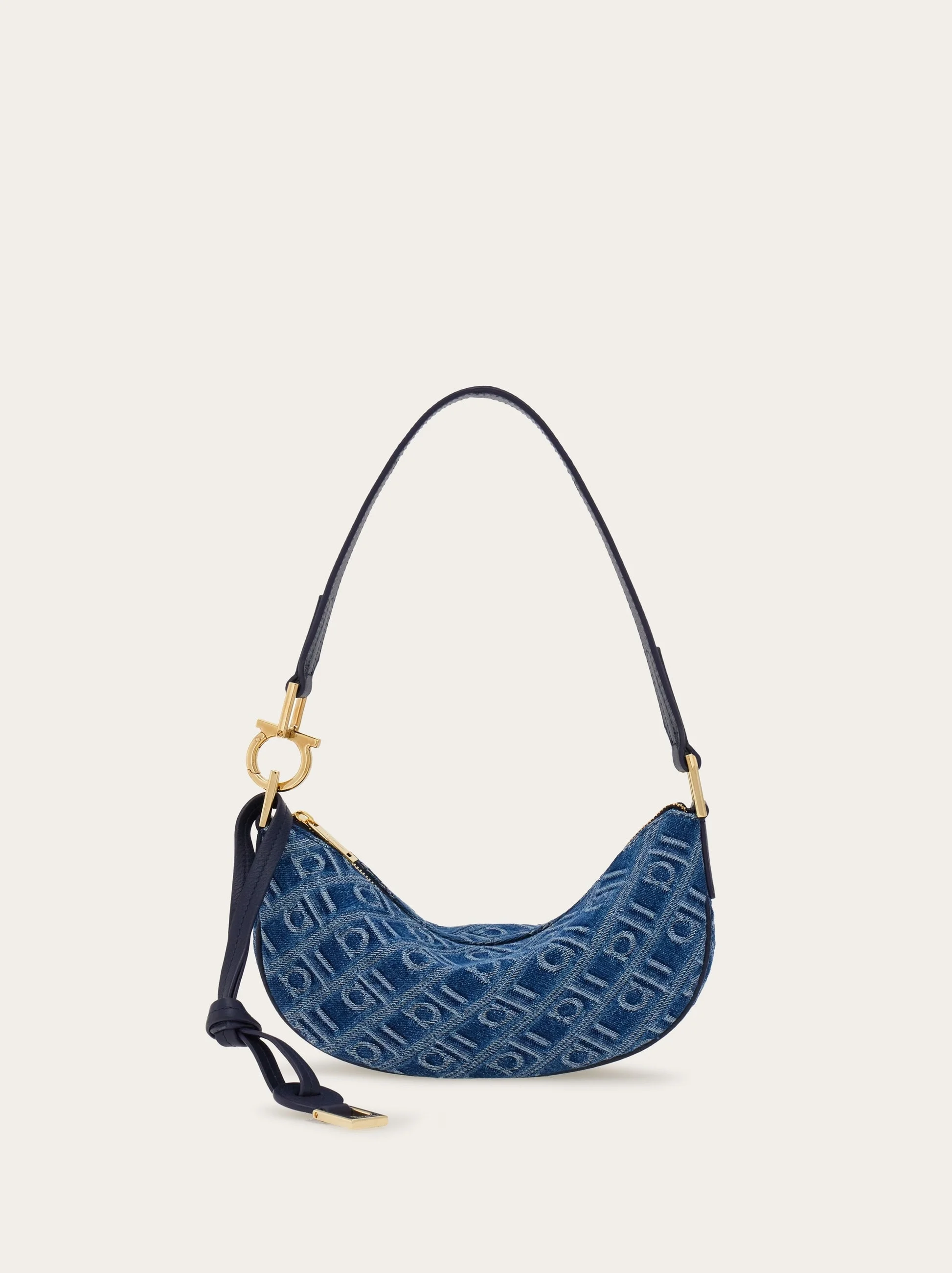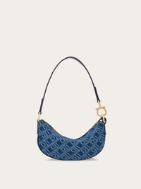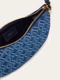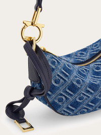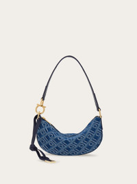 A perfect balance of glamour and iconic detailing: a new crescent-shaped mini bag with a soft velvet frame embellished with the Ferragamo monogram. The long drawstring can be used to extend the shoulder strap or as a decorative element. - height 4.5 IN length 9.6 IN width 1.7 IN - Composition: fabric - Mini - Made in ITALY - Product code: 220872 783809