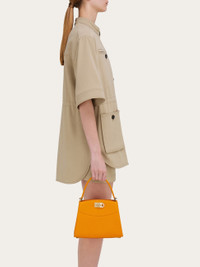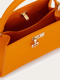 The Studio Box bag, a refined silhouette with a sophisticated appeal. In-keeping with the original style, this compact iteration features the iconic Gancio slider clasp on the front panel in a golden hue, and a lined interior with two compartments with inner zip pocket. A removable cross body strap offers a hands-free styling option. - A) Height 7.2 IN B) Length 9.4 IN C) Width 4.7 IN - Composition: hammered calfskin - Handle drop: 4.3 in/11 cm - Extra Small - Made in ITALY - Product code: 21A210 786124