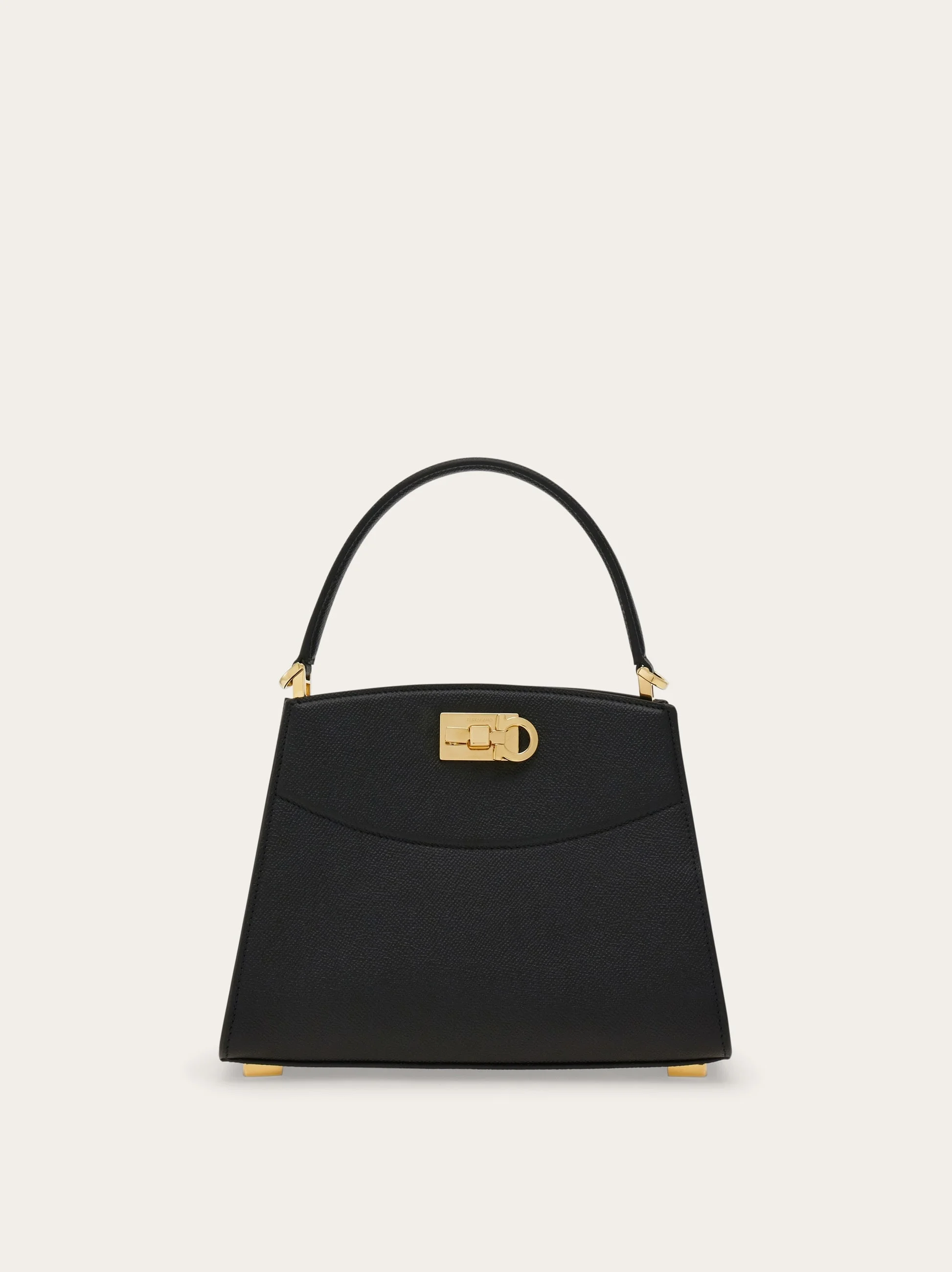 The Studio Box bag, a refined silhouette with a sophisticated appeal. In-keeping with the original style, this compact iteration features the iconic Gancio slider clasp on the front panel in a golden hue, and a lined interior with two compartments with inner zip pocket. A removable cross body strap offers a hands-free styling option. - A) Height 7.2 IN B) Length 9.4 IN C) Width 4.7 IN - Composition: hammered calfskin - Handle drop: 4.3 in/11 cm - Extra Small - Made in ITALY - Product code: 21A210 786122