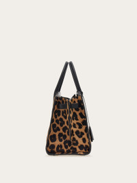 An exclusive edition to the Ferragamo Studio line, this Soft bag is cut from luxurious pony skin. The animal print enhances the glamorous feel of this capacious accessory with ample slide bellows and tonal top handle. It fastens via a golden Gancio slider clasp, with tonal covered keyring for a playful note. Adjustable removable shoulder strap. - A) Height 9.4 IN B) Length 14.1 IN C) Width 6.4 IN - Composition: printed calfskin - Handle drop: 4.7 in/12 cm - Large - Made in ITALY - Product code: 21A110 786019