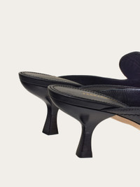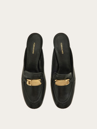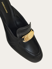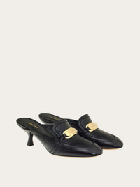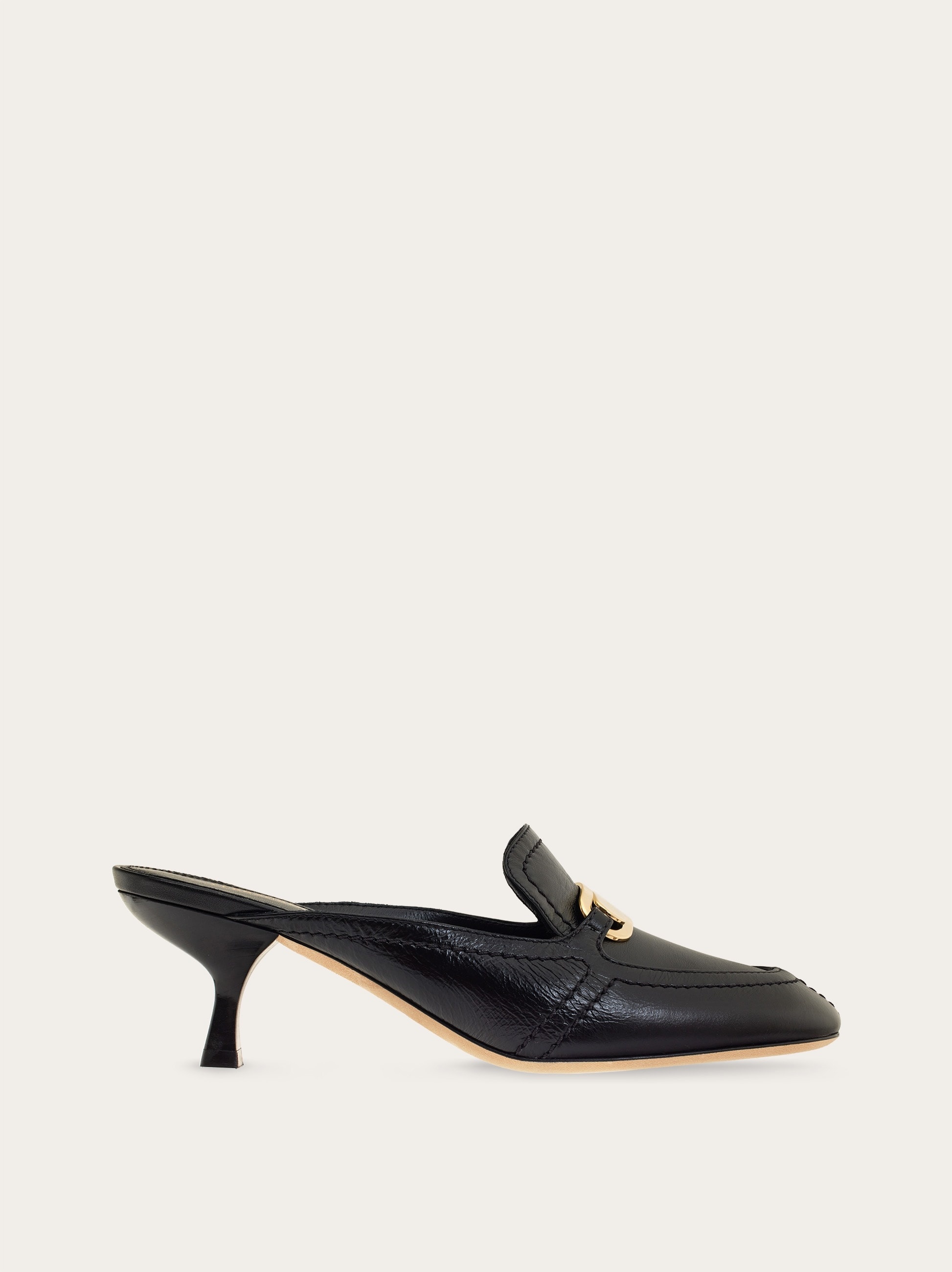 Comfy, stylish, and perfect for mid-season looks, the mule is the solution to many a fashion conundrum. Refined with androgynous inspiration, it features a calfskin upper with double stitching trim, and a golden custom buckle across the instep. The elongated tip is inspired by the Vara shoe, and the 5.5cm heel is the perfect height for day to night looks. Nubuck effect pumiced leather sole. - Composition: calfskin - Made in ITALY - Product code: 01H988 773104