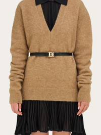 This fixed belt is made of soft calfskin leather with a natural grainy texture. A romantic bow at the center of the slim, sophisticated shaft is held by a new Vara buckle in a golden hue. - height 0.7 IN - Composition: calfskin - Made in ITALY - Product code: 230374 780285