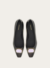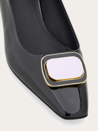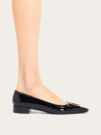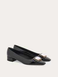 Available in several shades, with various unique color combinations, this new Ferragamo ballet flat will add a touch of personality to any outfit. Made of patent calfskin for a glam finish, it has a new two tone Gancini buckle at the tip for a nod to sixties style. Low covered heel, leather sole. - Composition: patent calfskin - Made in ITALY - Product code: 01I792 775259